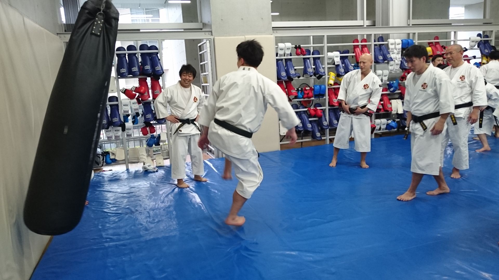 基本の後は、レッグガード、グローブを付けて乱捕り稽古へ