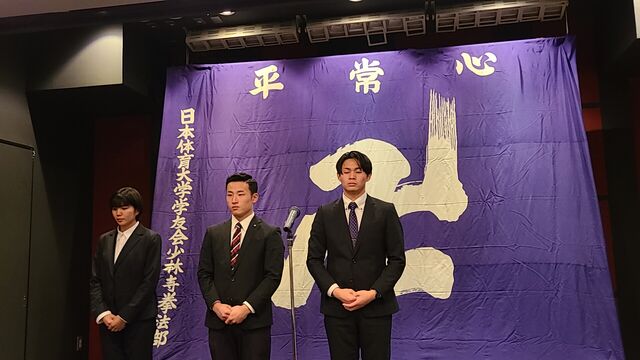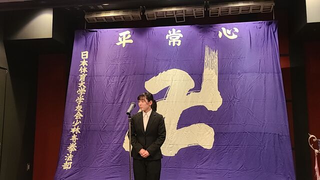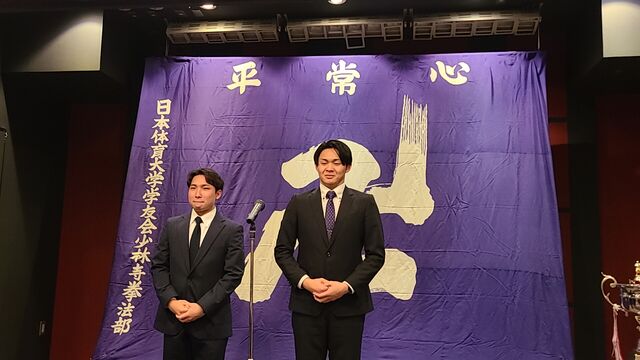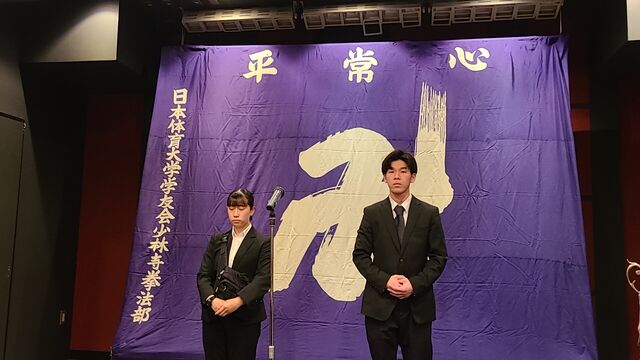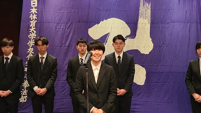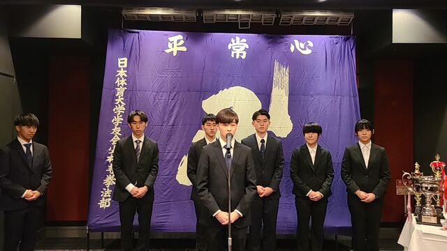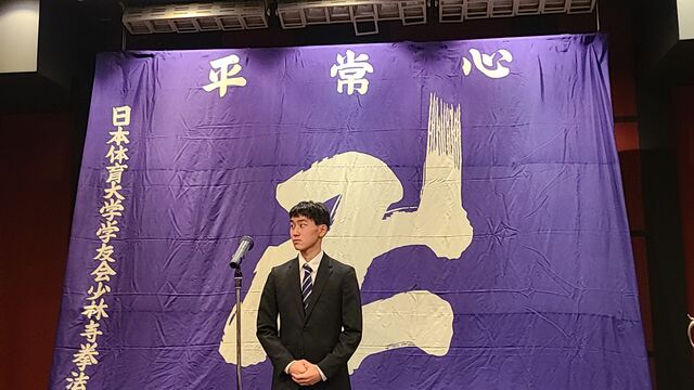 勝利至上主義に陥っては本末転倒でありますが、技術レベル、そして高い志を持った上級生の中で揉まれ、修練を重ね、もっともっと上を目指し、この4年間、全力で青春を少林寺拳法に掛けてもらいたいと思います。そしてその厳しい修練のなかで人間を磨き、8名欠けることなく、この日体大少林寺拳法部を卒業してもらいたいものです。