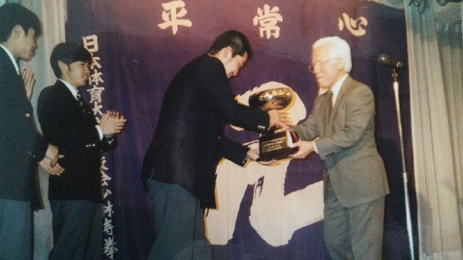 ¡Ö¤³¤Î¼Ì¿¿¤Ï1998ǯ¡¢¥Û¥Æ¥ë¥Ë¥å¡¼¥ª¡¼¥¿¥Ë¤Ç¹Ô¤ï¤ì¤¿´´Éô¸òÂå¼°¤Ç¤Î°ìËç¤Ç¤¹¡£¤³¤Îǯ¤Î10·î¤ËÆüËÜÉðÆ»´Û¤Ç³«ºÅ¤µ¤ì¤¿Á´ÆüËܳØÀ¸Âç²ñ¤Ë¤ª¤¤¤Æ¡¢ÆüÂÎÂç¤ÏÃÄÂαéÉð¤Î¼ïÌܤǽéÍ¥¾¡¤¹¤ë¤³¤È¤¬¤Ç¤¤Þ¤·¤¿¡£Åö»þ¡¢OB²ñŤǤ¢¤é¤ì¤¿ÅÚ²°µÁÀ²ÀèÇÚ¤¬²æ¤¬¤³¤È¤Î¤è¤¦¤Ë´î¤ó¤Ç¤¯¤ì¤¿¤³¤È¤òº£¤Ç¤âÁ¯ÌÀ¤Ë³Ð¤¨¤Æ¤¤¤Þ¤¹¡£