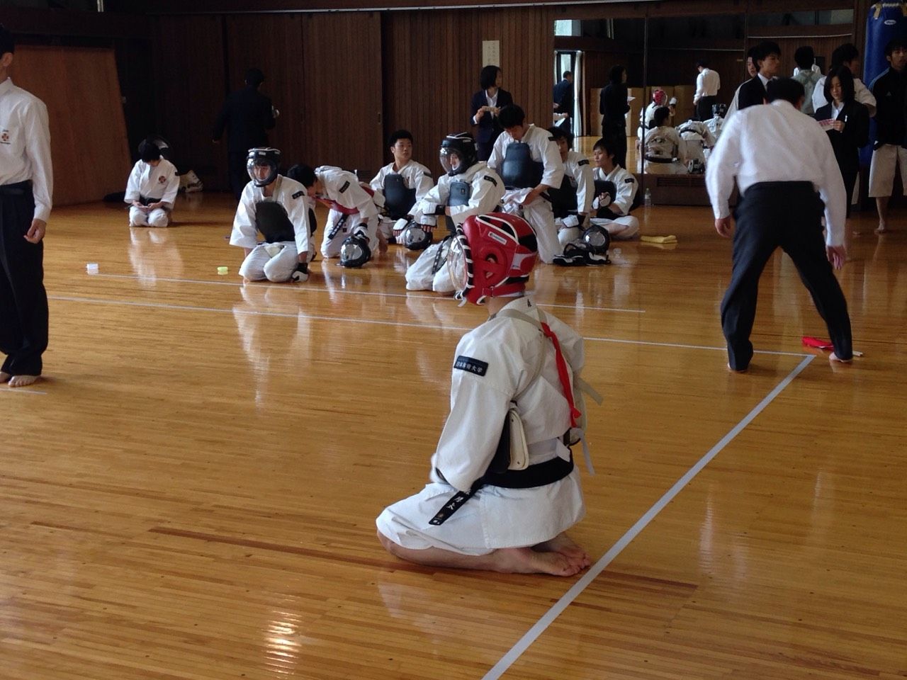 大学拳法部の部員減少の波は「どこ吹く風?」の日体大少林寺拳法部。有望な新入生を13名迎え、総勢40名を超える大所帯で、道場は活気に溢れております。5月4日の関東学生大会に向けて、学生たちもだいぶ「上げて」きているようです。その部員たちに、51代は「てっぺん」を目指し、自分たちの背中を見せるように切磋琢磨、邁進しております。