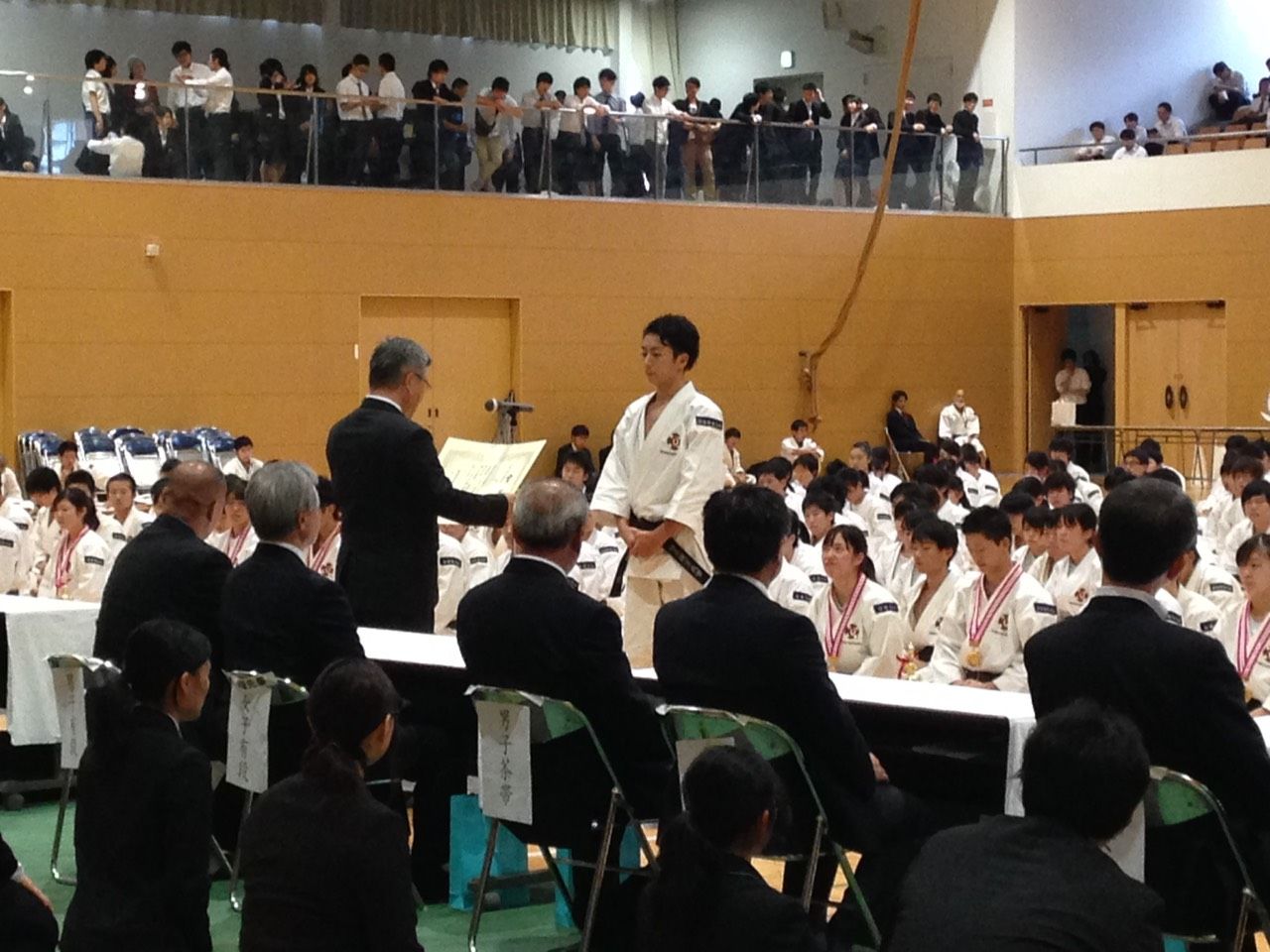 1・2年生のみが参加できる新人大会。他大学は白帯から黒帯までいて全カテゴリーにエントリーする中、日体大は茶帯が1名であとはすべて有段者。ほぼ有段の部のみのエントリーで、最も活躍した大学に贈られる「新人育成賞」を獲得いたしました。特に男子有段の部の1.2、3位フィニッシュは見事でした。