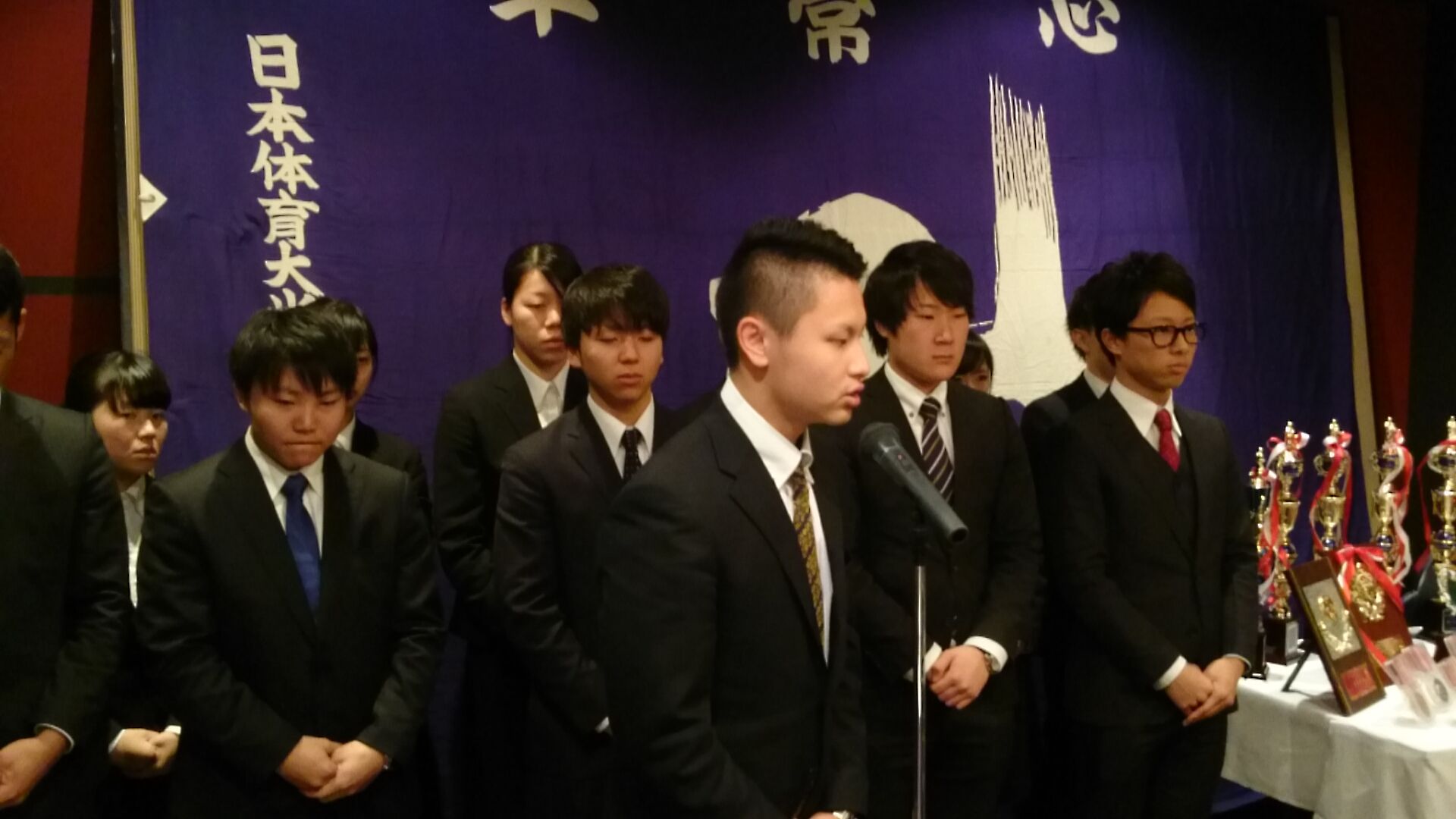 新幹部を代表して 52代主将 勝田将輝 の決意表明
