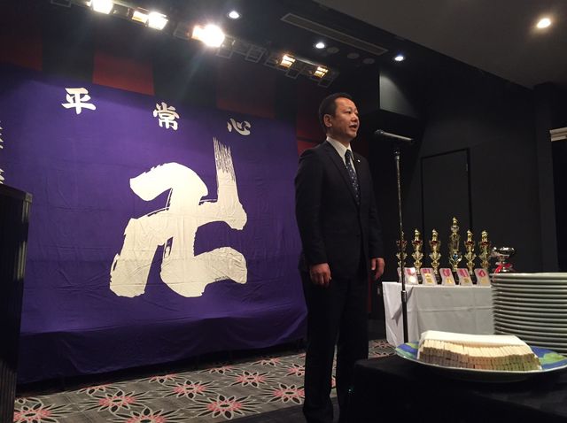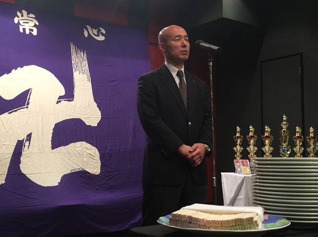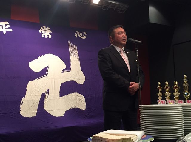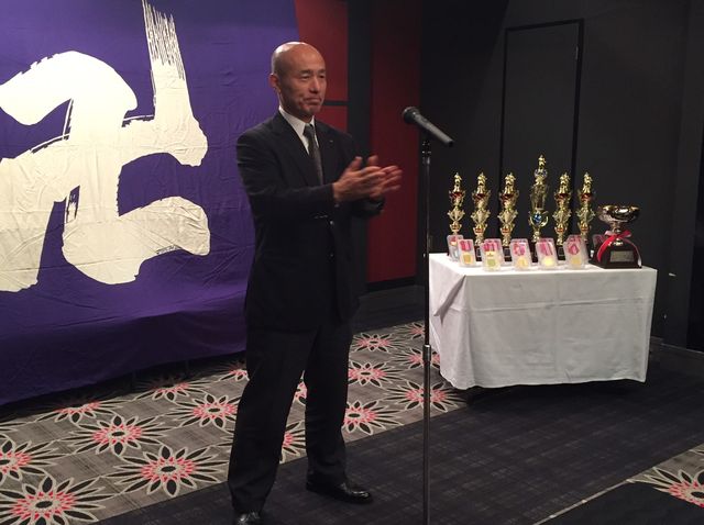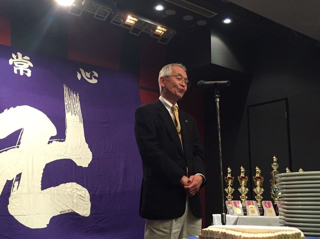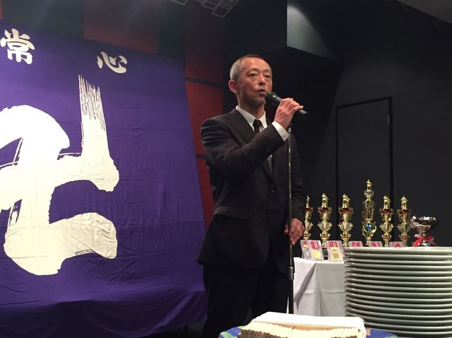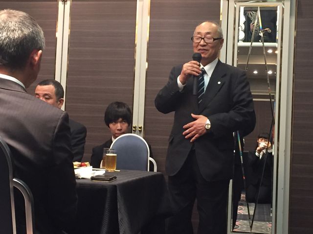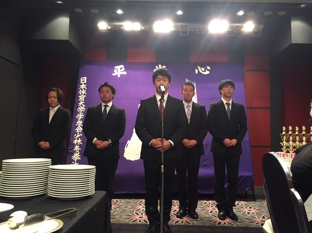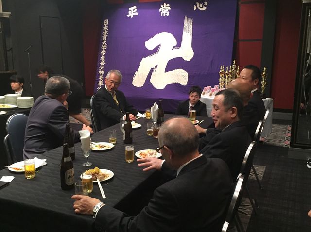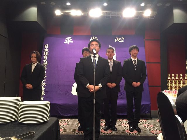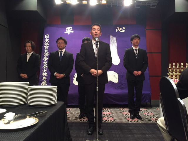 いつもお世話になっている少林寺拳法部後援会長 森田様に乾杯の音頭をとっていただきました。今後とも日体大宜しくお願い致します。