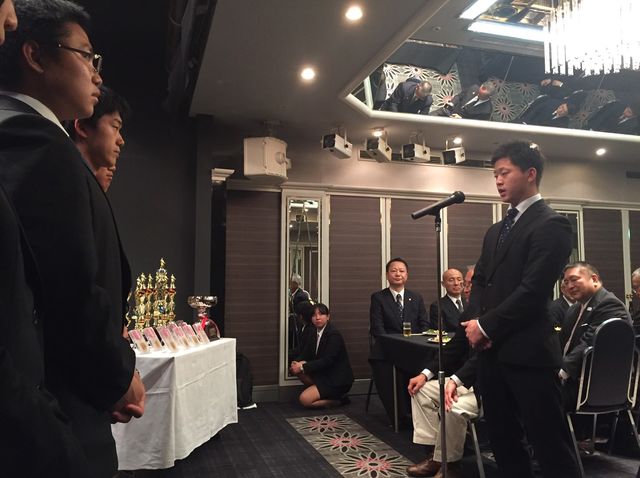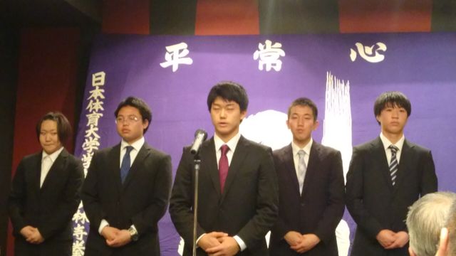 代表して駒澤大学の4年生より挨拶をしてもらいました