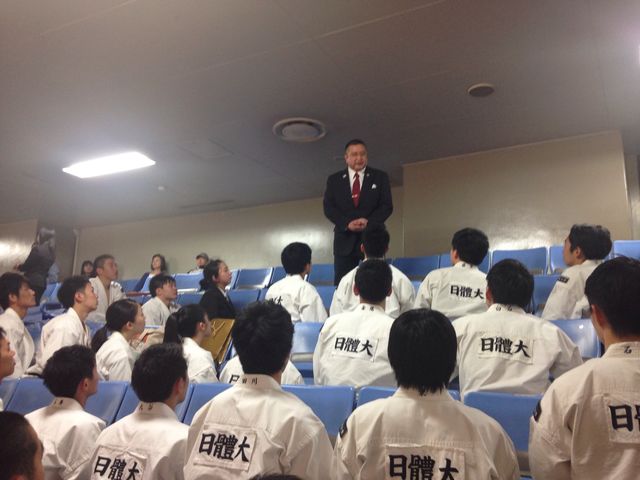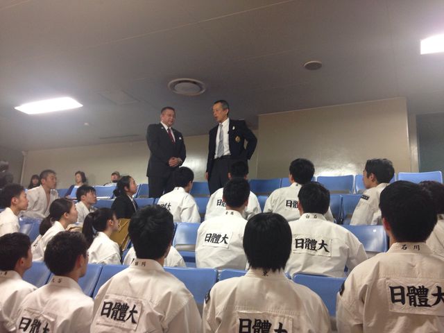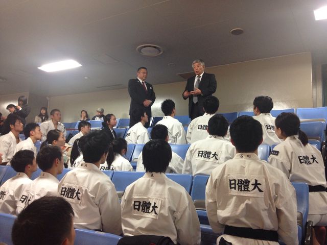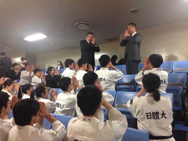 先日の関東学生大会で6部門優勝、立合評価法で個人優勝など輝かしい成績を収めました。この勢いそのままに、メモリアルイヤーである2017年を充実したものにしてもらいたいものです。この夏には世界大会もあります。日本の日体大から世界の日体大へとさらに上を目指してくれるものと信じています。そのためにも53代幹部を中心として、しっかりと着実に「王者日体大」の名に恥じない稽古を積み上げてもらいたいと思います。