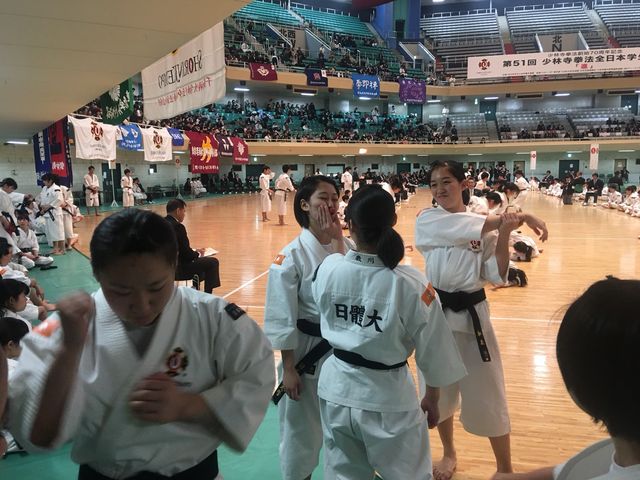 編集者(福家)は、審判やレフリーとしてアリーナの間近で、学生の競技をみていました。非常に高いレベルで、これからの少林寺拳法全体を牽引してくれるのは若い拳士たちであることを再認識することができました。学生たちには、大学卒業後も細くてもいいから長く少林寺拳法を続けてもらいたいと痛切に感じました。