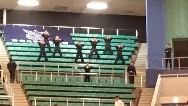 戦い済んで・・各大学がアリーナに参集し、学生同士がエールを送ります