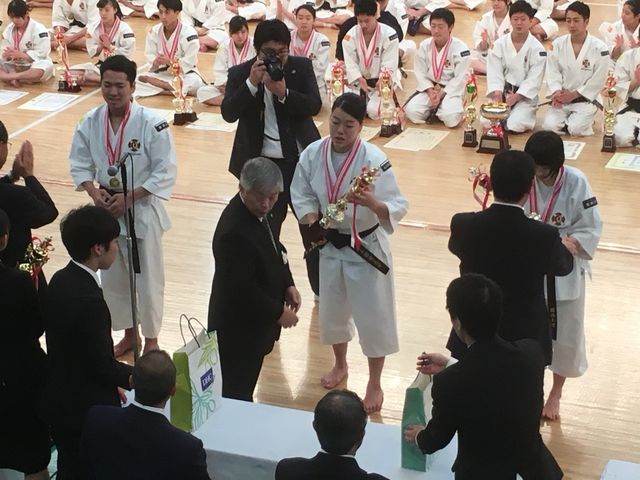 男子団体の一位、男子二段の部一位、立合評価法 女子中量級で一位そして優秀大学表彰で総合3位は立派な成績を残してくれました。