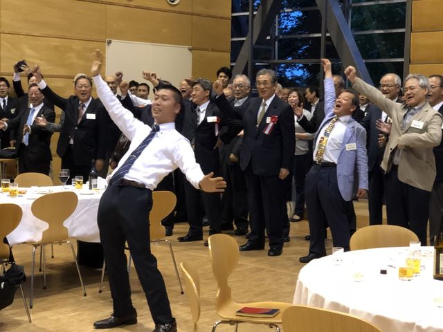 宴も中盤に入り、各大学のOB会長から挨拶をもらいました
