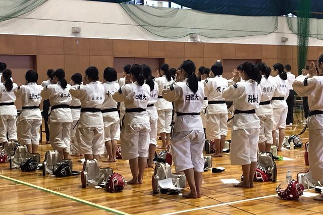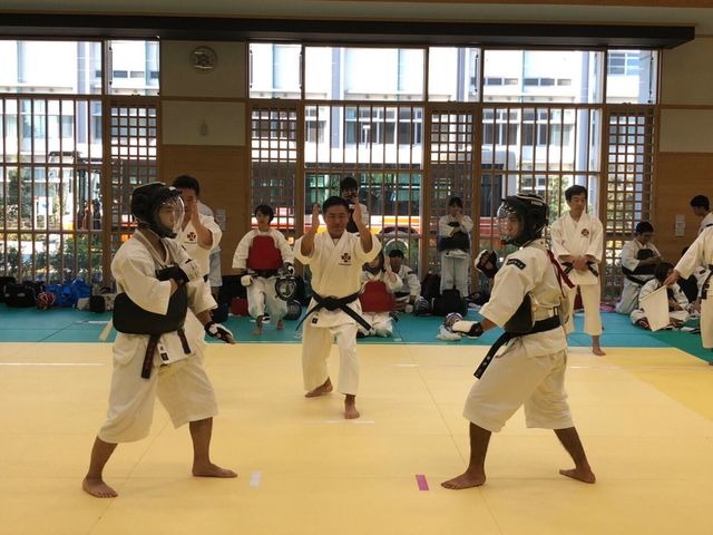 立合評価法・・卒業生の皆様・・昔でいう乱捕りの試合です。違う大学と3試合行います!