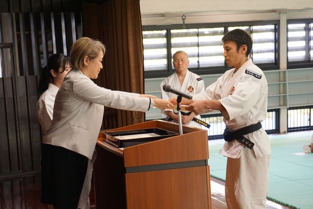 学生代表の演武に 本学3年(新4年)の澤田も迫力のある演武をおこないましたl
