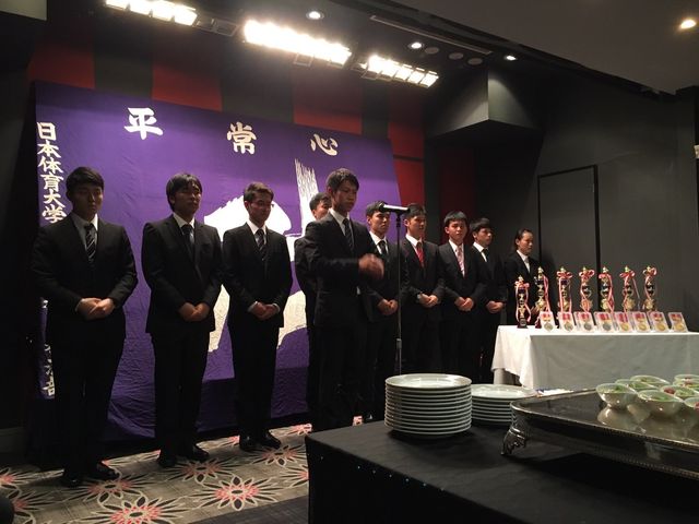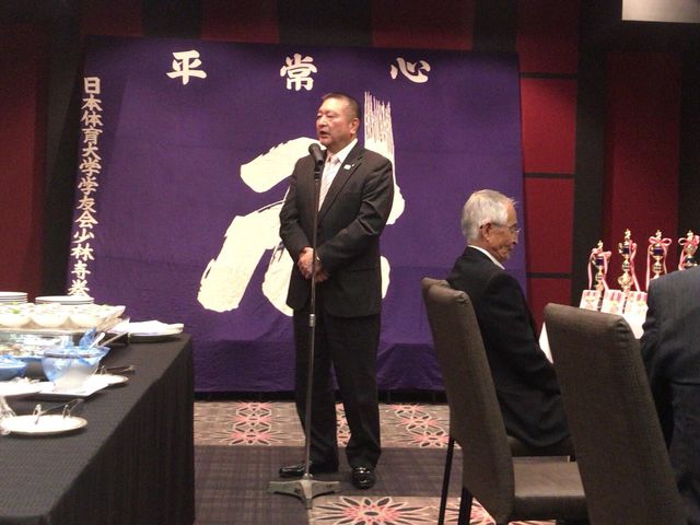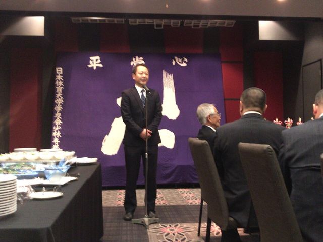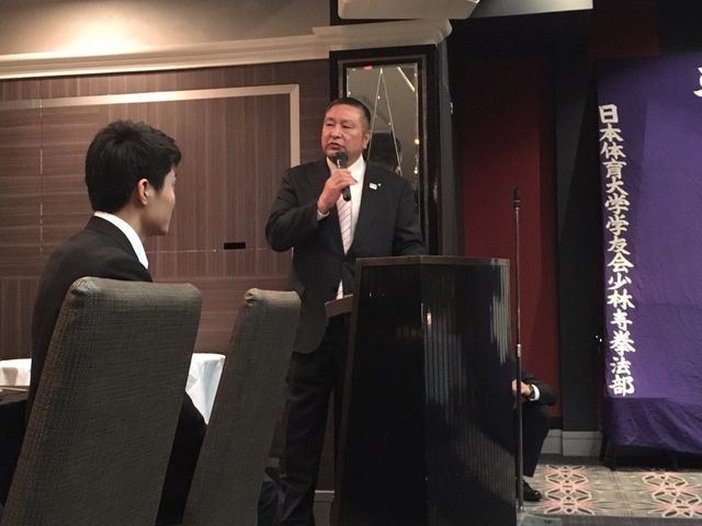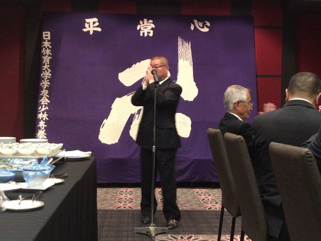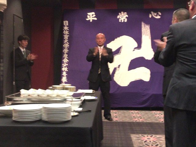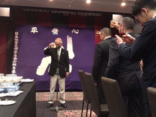 いつもお世話になっている少林寺拳法部後援会長 森田様に乾杯の音頭をとっていただきました。今後とも日体大宜しくお願い致します。