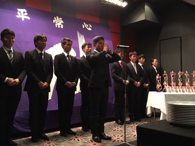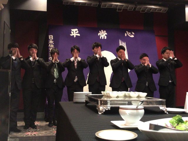 関東学生大会でも早速活躍をしてくれました。未経験者で入部した青柳も茶帯相手に6位入賞するなど、これからの日体大少林寺拳法部を担ってくれる粒ぞろいの10名です。いつもお世話になっているホテルニューオータニにおいて58代の新入生報告会が行われました。その様子をご紹介します。