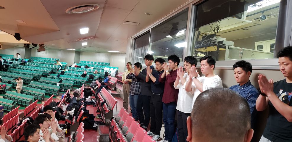 いつも大会や合宿、行事で日体大を応援していだいている田無道院 道院長 宮内先生による三々七拍子で閉会となりました