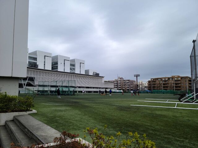 昔、大学院があった側(プールがあった所を)からグラウンドを望むと
