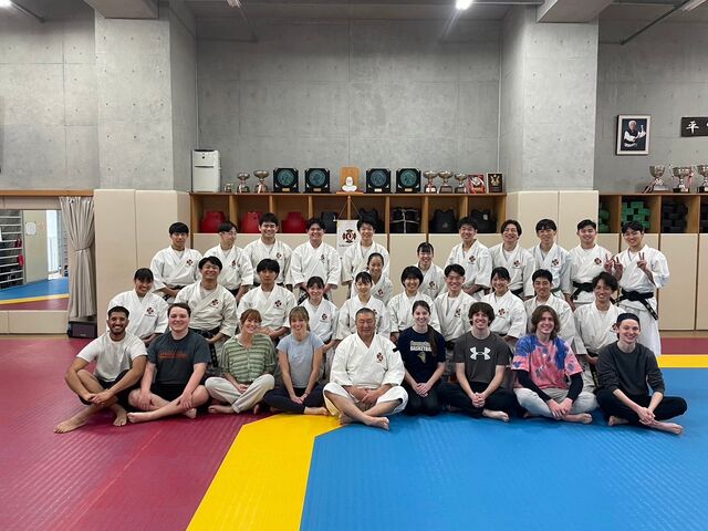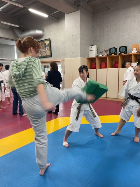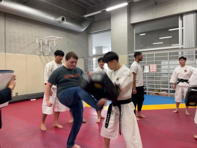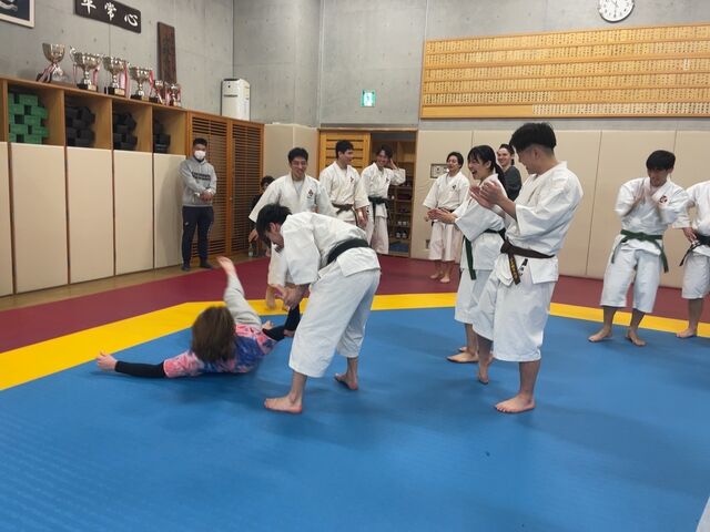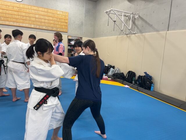 また、2日目にはアメリカのオーガスタナカレッジから留学生が体験に来てくれて、少林寺拳法を通して国際交流をすることができました。